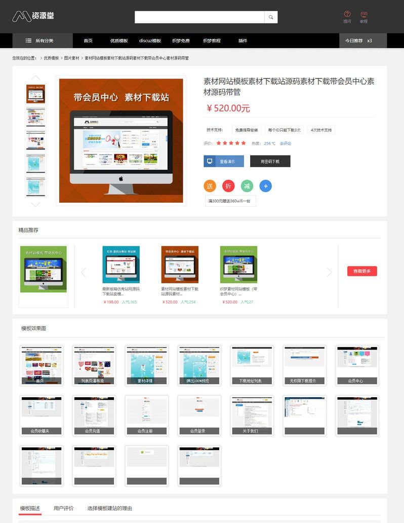 模板 资源 源码 支付 会员