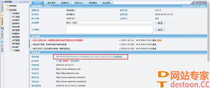 3:纯模板版只是模板相关文件,不带程序,需要自行到destoon.com下载程序自行安装调试(需有一定技术基础用户)。(整站版使用的是destoon官方6.0最新版,已打20171011补丁)