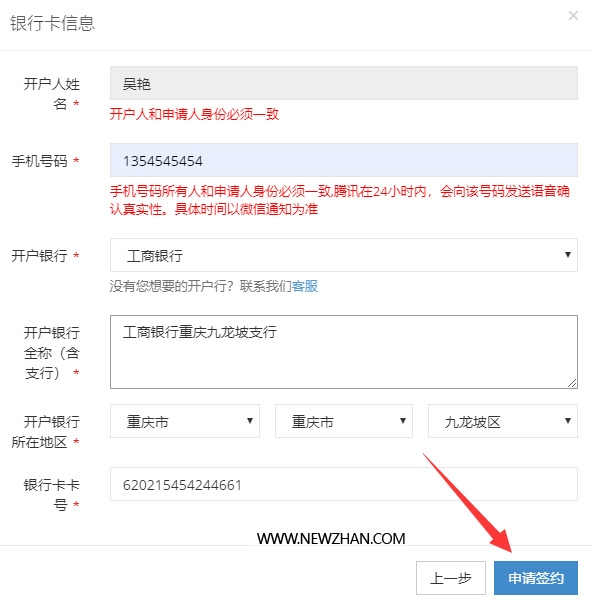 填写结算银行卡信息,提交审核,提交审核后,最快9分钟可以处理完毕,就会收到签约邮件。然后在后台点击签约。